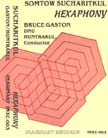 Somtow Sucharitkul "Hexaphony" A synthesis of Thai and Western musical forms, in a "premeditated improvisation" with the Western parts composed by Sucharitkul and the Eastern by American Bruce Gaston. Conducted in the live performance by Dnu Huntrakul. Each of the six performers select from six different instruments at any one time, as directed by the conductor. Primary instrument--Sucharitkul: piano, Huntrakul: vibraphone, Gaston: ranaat ek, Tienchai Namatep: ranaat thum, Solot Kooptarat: so u & so duang, Aunnop Chansuta: percussion. recorded 1 Feb 1978, Cultural Center of the Philippines, Manila, released 1986. cassette only, US list $9.98. Imaginary Records IMX-003 / UPC 8074100034. |